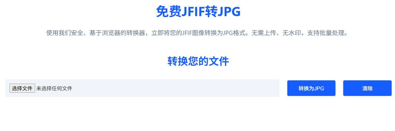 📁 网站简介:一个免费的将JFIF格式的图像转换为JPG格式的工具。可以在几秒钟内完成转换,且无需上传文件。