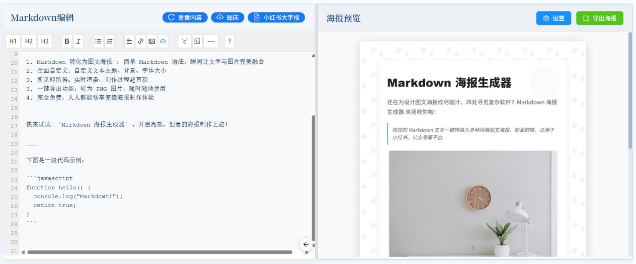 🆔 网站名称:Markdown海报生成器