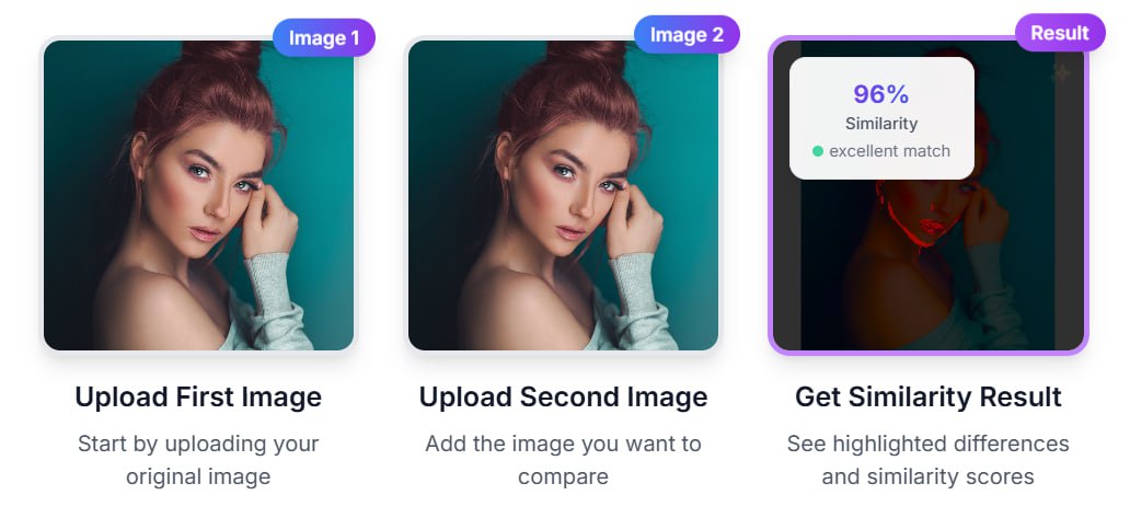 📁 网站简介:一个专业的AI图像相似性检查工具,通过数学算法精确比较两张图片之间的差异。