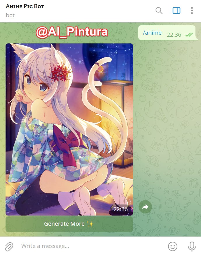 📁 机器人简介:一款可以随机生成动漫图片的telegram机器人。输入 /anime 即可生成动漫图片,如不满意可以点击图片下方的 generate more。