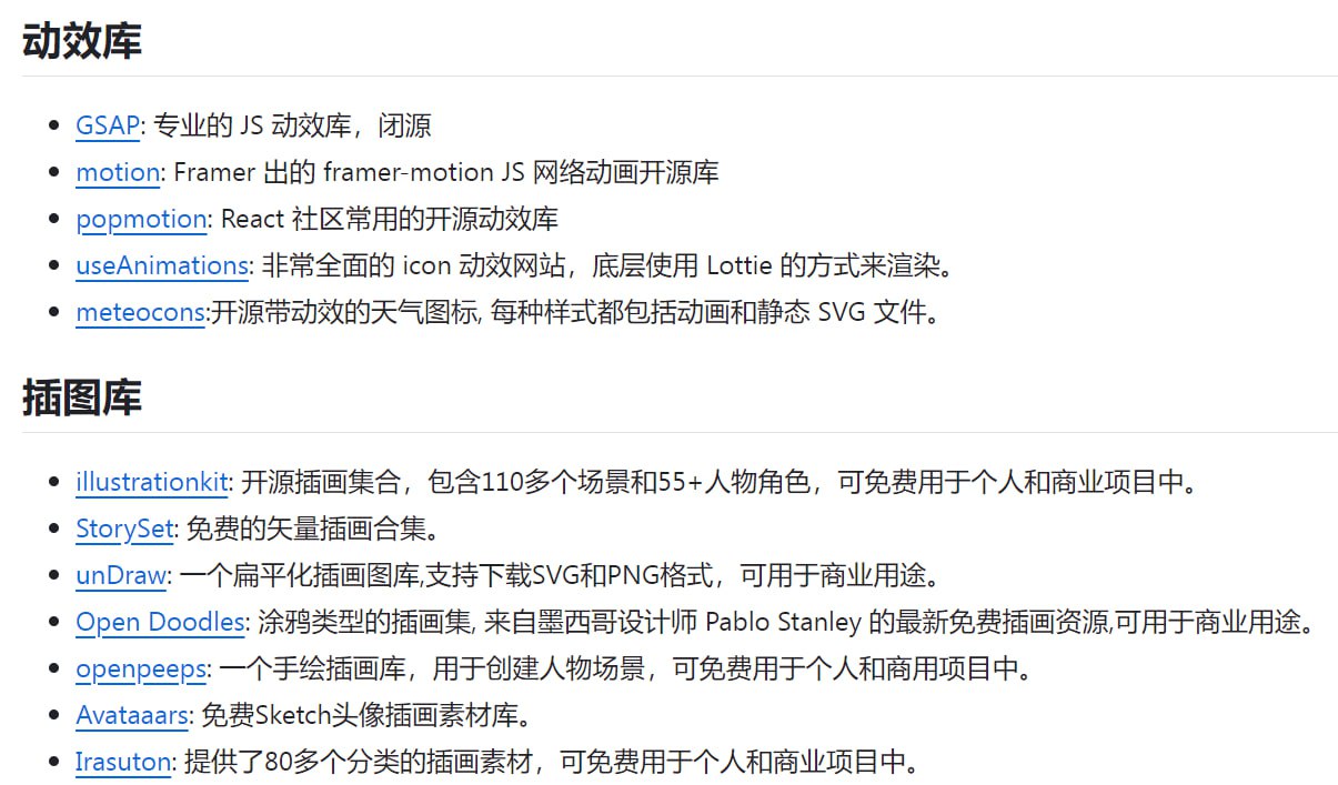 包含的分类有动效库、插图库、图标库、Logo生成、Figma资源等。