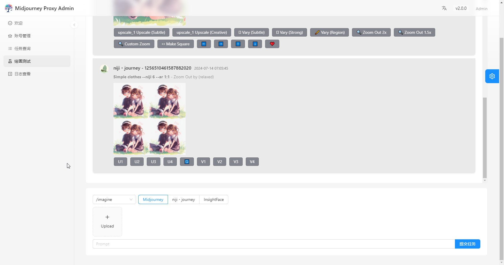 支持多账号配置,每个账号可设置任务队列,并提供不同的生成速度模式(RELAX、FAST、TURBO)。