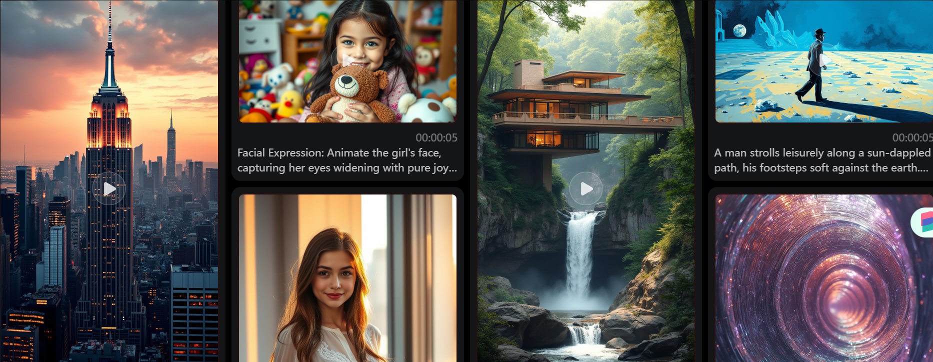 通过将文字或图像转换为生动的视频,具有快速生成、逼真运动和无缝过渡的特点。