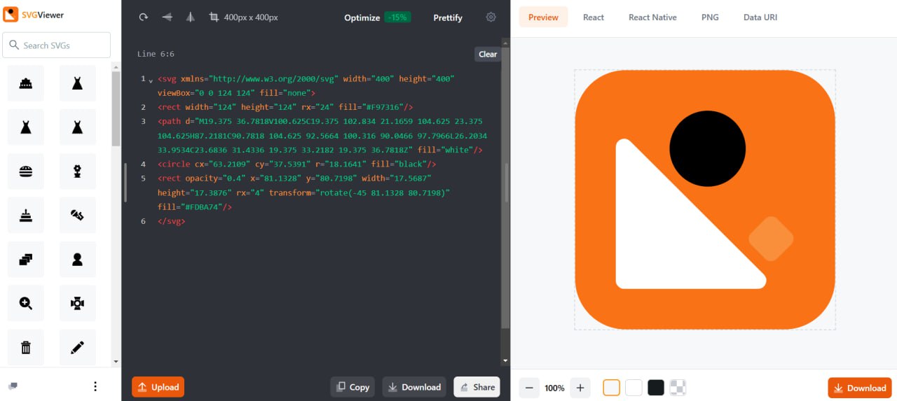 可以通过简单的界面上传 SVG 文件,实时预览其效果,并进行必要的编辑和优化。