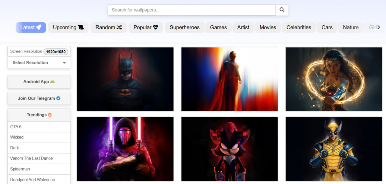 hdqwalls 2025-01-03 🆔 网站名称:hdqwalls ⭐ 网站功能:高清壁纸 📁 网站简介:一个提供高清壁纸的网站,可以在这里下载各种分辨率的壁纸,包括4K、5K和8K等高质量选项。 壁纸种类繁多,涵盖了超级英雄、游戏、艺术、电影、名人、自然等多个主题。 🔗 网站网址:点击打开