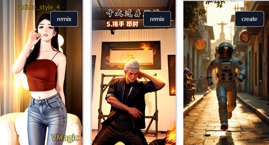 VMagic 2025-01-09 🆔 网站名称:VMagic ⭐ 网站功能:视频转动画 📁 网站简介:一款将视频转换为动画、进行面部交换和图像舞蹈的工具。可以通过简单的操作,将静态图像或视频转化为生动的动态内容。 可以将视频转换为卡通、真实或抽象艺术风格,甚至可以让单张照片中的角色进行舞蹈或其他动作。 🔗 网站网址:点击打开