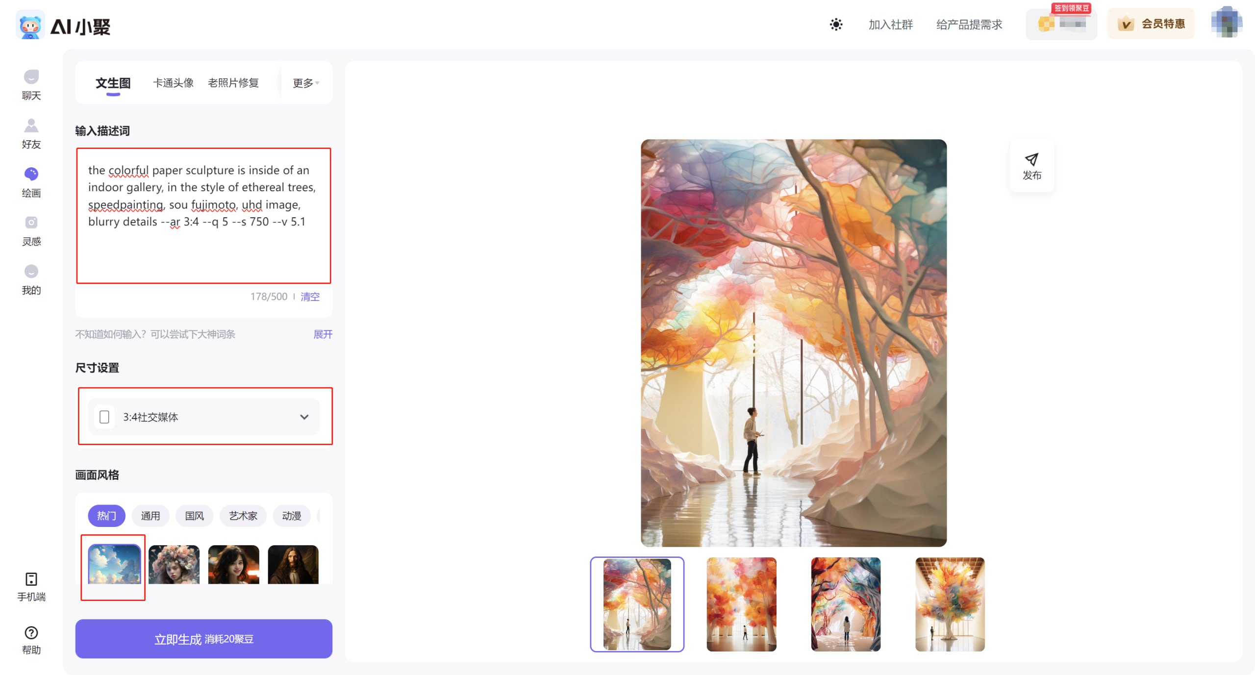 AI小聚 2024-01-29 🆔 网站名称:AI小聚 ⭐️ 网站功能:AI绘画 📁 网站简介:一个智能聊天、写作、绘画网站,为用户提供强大的AI模型。在这里,用户只需要输入文字或图片,就可以生成独特的AI绘画作品。 🌐 网站网址:点击打开[ ](https://www.aigenprompt.com/zh-CN)