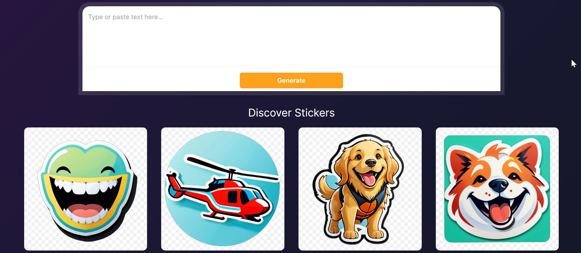 Sticker.Show 2024-03-24 🆔 网站名称:Sticker.Show ⭐️ 网站功能:AI贴纸制作 📁 网站简介:一个免费的在线AI贴纸制作和生成工具,只需输入或粘贴文本,即可生成各式各样的贴纸。 🌐 网站网址:点击打开[ ](https://www.aigenprompt.com/zh-CN)