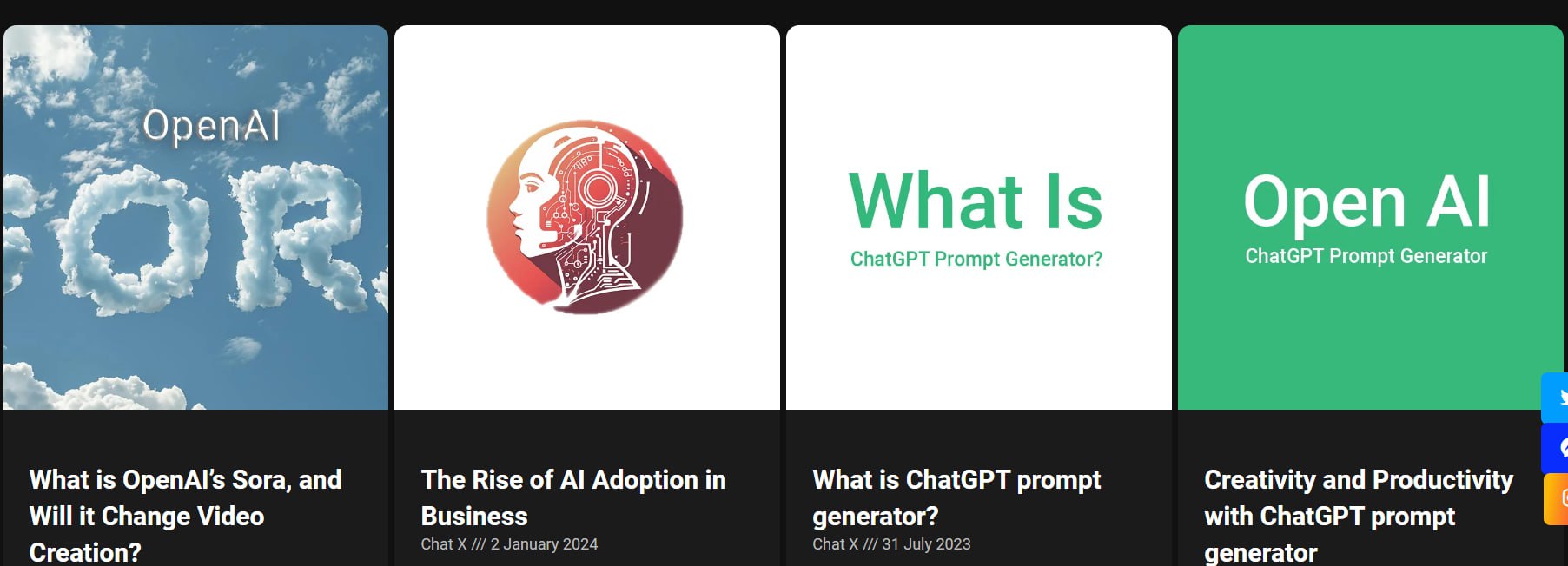 ChatX 2024-05-03 🆔 网站名称:ChatX ⭐ 网站功能:提示词市场 📁 网站简介:一个为 ChatGPT、DALL·E、Stable Diffusion 和 Midjourney 提供生成性 AI 提示的免费市场。 可以快速、容易地找到适合其项目的生成性 AI 提示。此外,ChatX 还提供了各种与 AI 相关的礼品和产品。 🔗 网站链接:点击打开