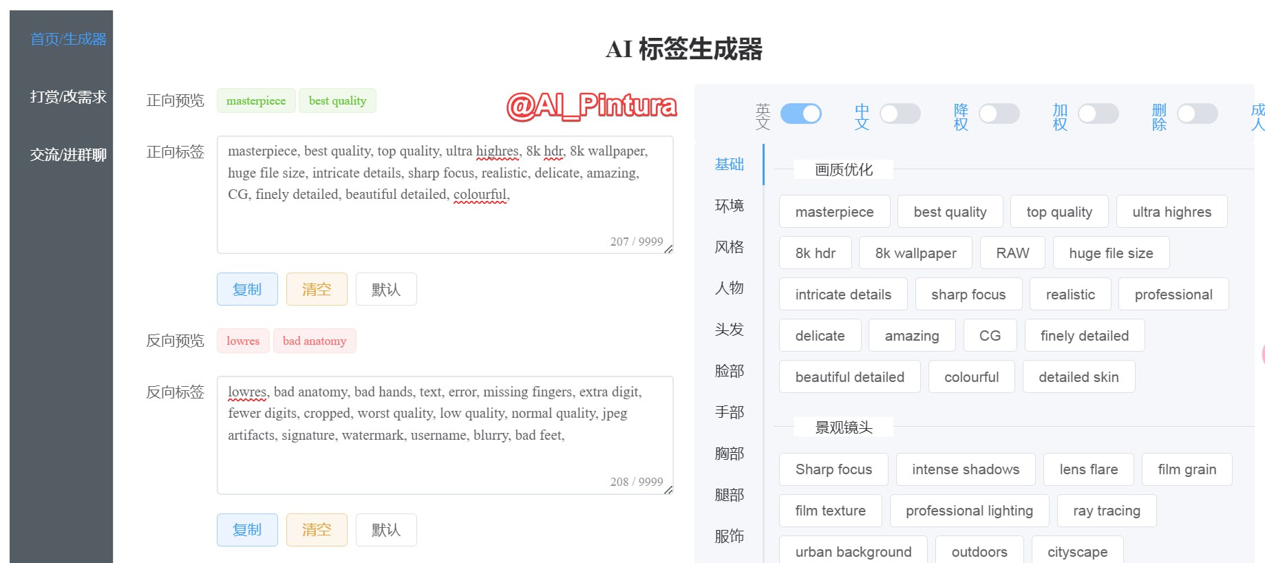 📁 网站简介:AI绘画标签生成器:将标签进行分类整理,支持中文显示、加权、降权、成人模式等功能。