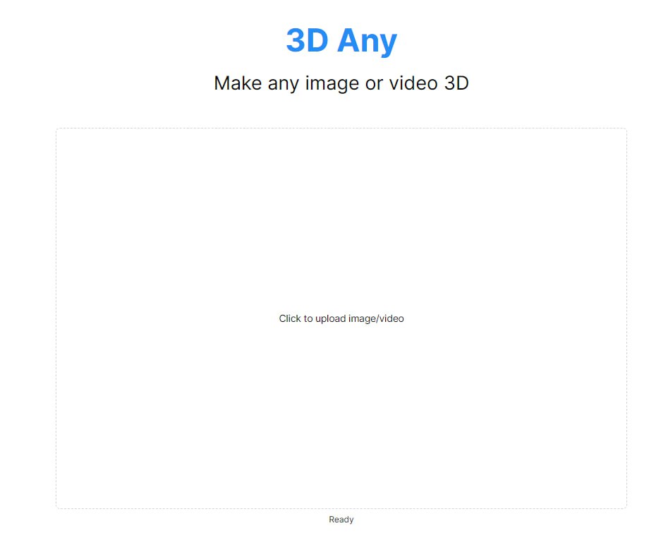 3D Any 2024-06-08 🆔 网站名称:3D Any ⭐️ 网站功能:图片或视频转换为3D视觉效果 📁 网站简介:一个利用AI技术将图片或视频转换为3D视觉效果的免费AI工具站。 支持核心功能3D立体化图片或视频,可自定义3D化程度。支持自定义帧数、开始播放秒数、循环播放模式。支持截屏和录制功能。 🌐 网站网址:点击打开[ ](https://www.aigenprompt.com/zh-CN)